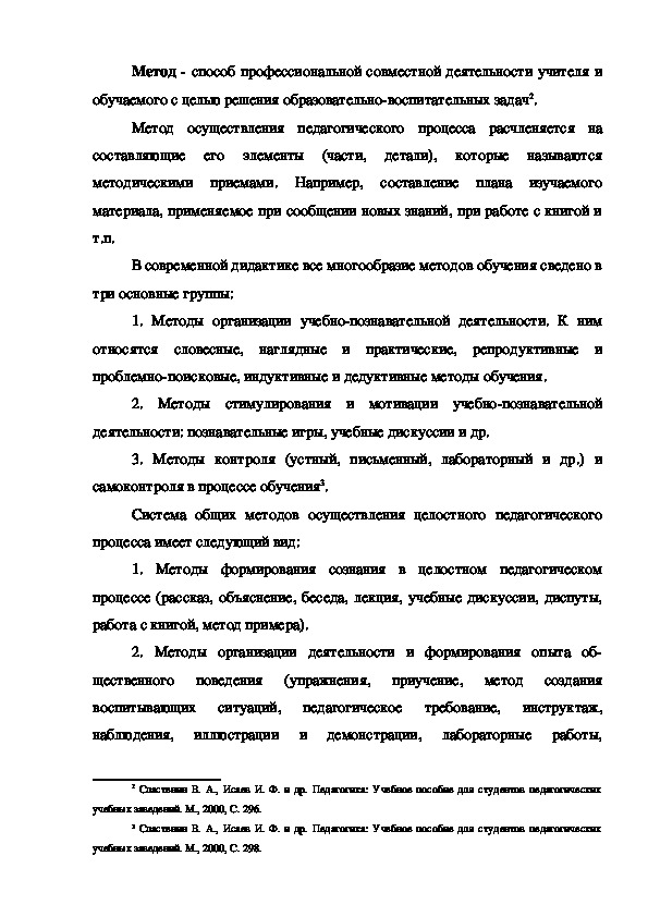 2 Сластенин В. А., Исаев И. Ф. и др. Педагогика: Учебное пособие для студентов педагогических