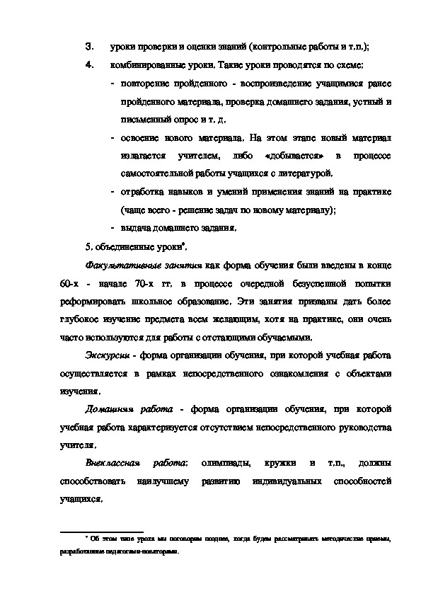 * Об этом типе урока мы поговорим позднее, когда будем рассматривать методические приемы,