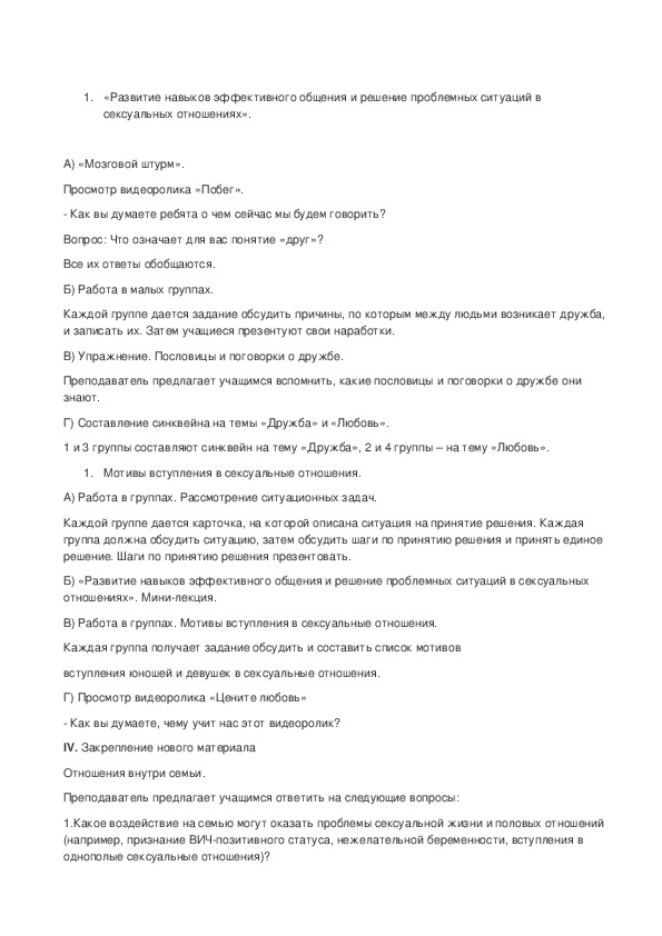 Б) «Развитие навыков эффективного общения и решение проблемных ситуаций в сексуальных