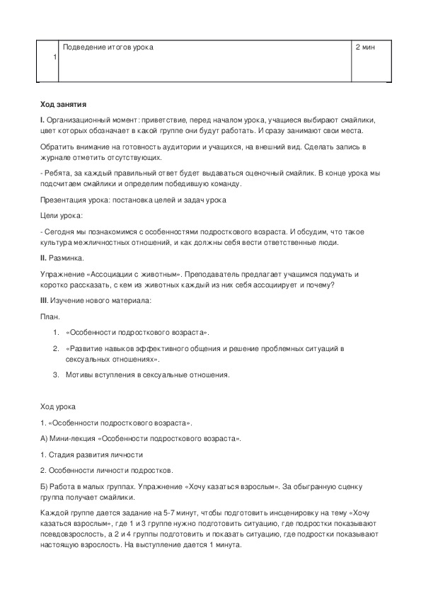 тема об особенностях подросткового возраста. об умении строить отношения друг с другом.Цель занятия: