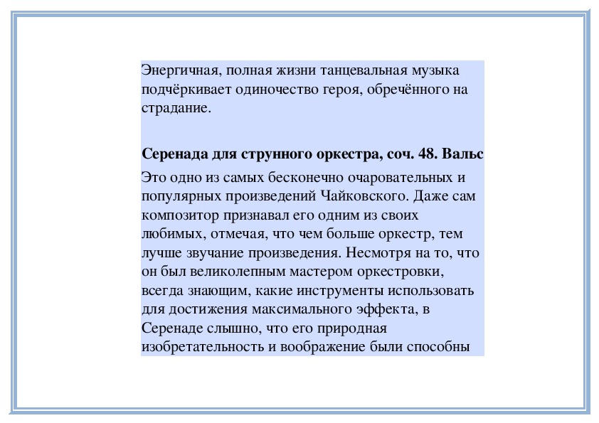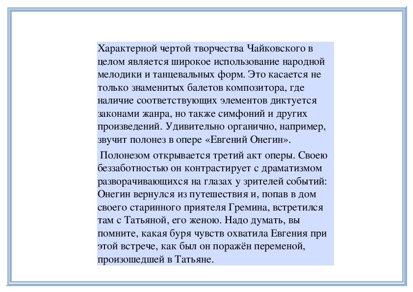 произведениях композитора...Характерной чертой творчества Чайковского в