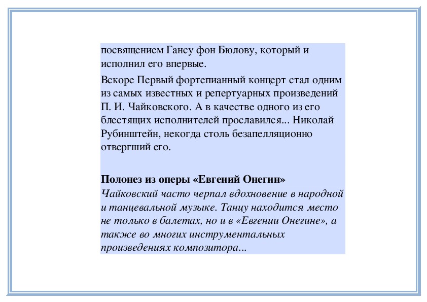 Рубинштейну. Впоследствии концерт вы ходил спосвящением Гансу фон Бюлову, который и