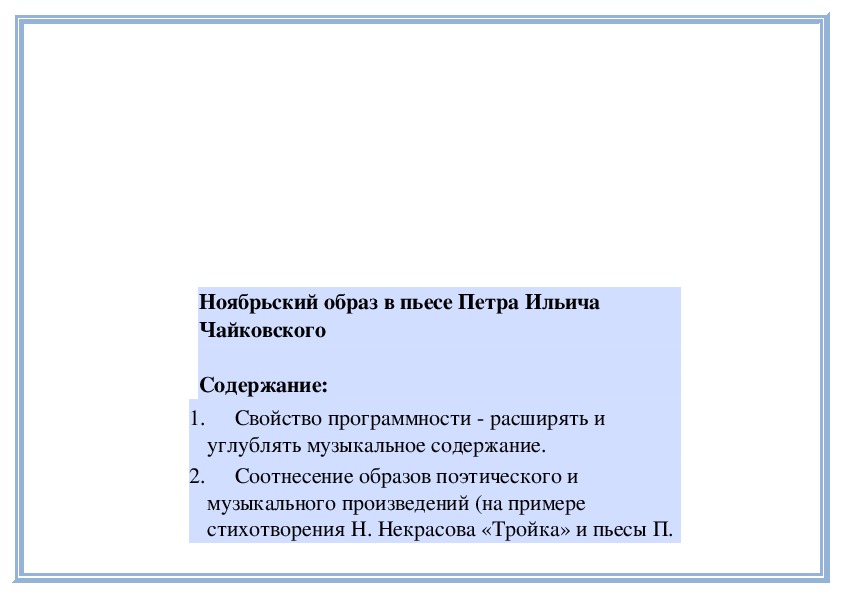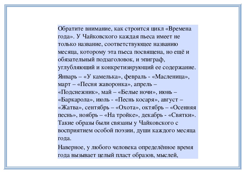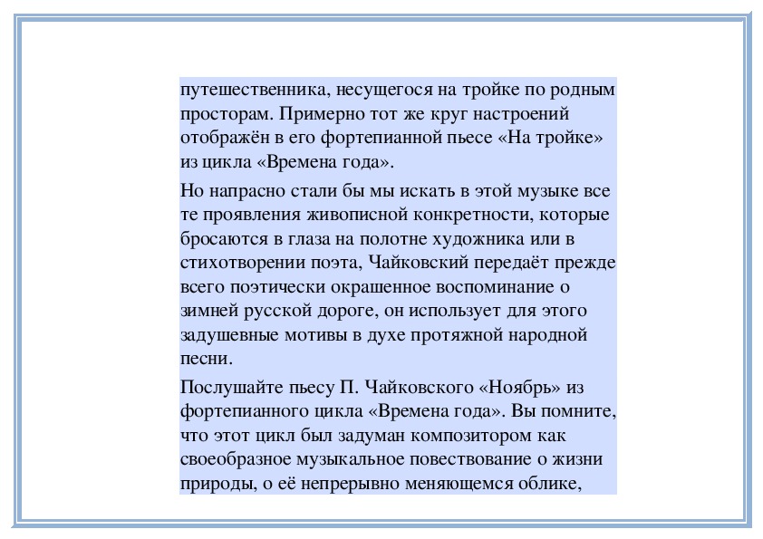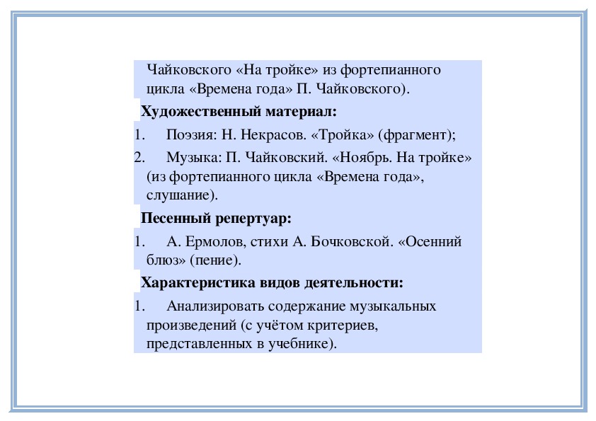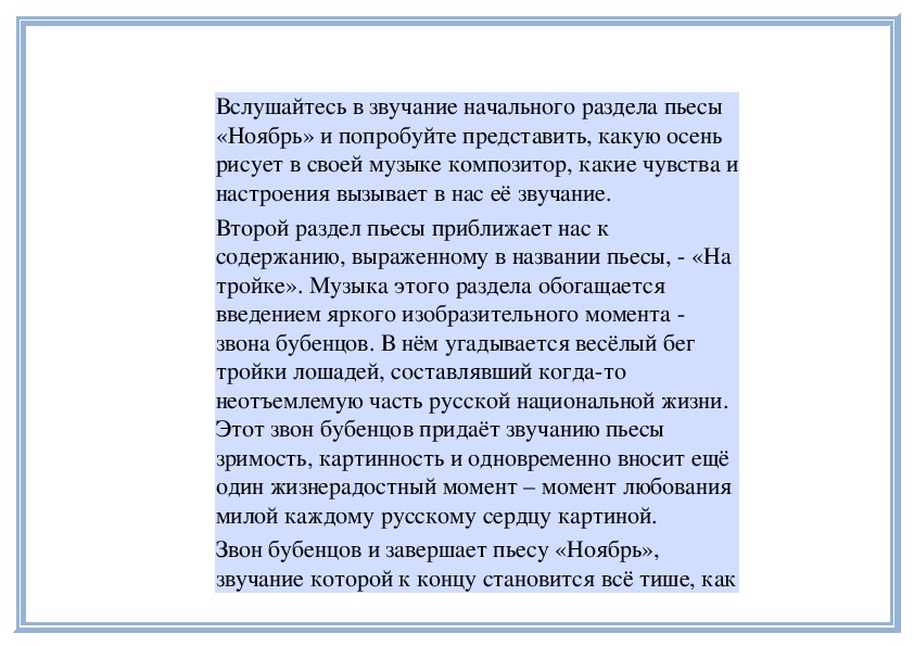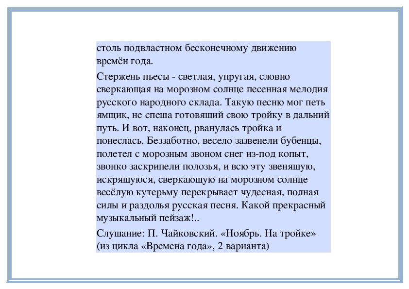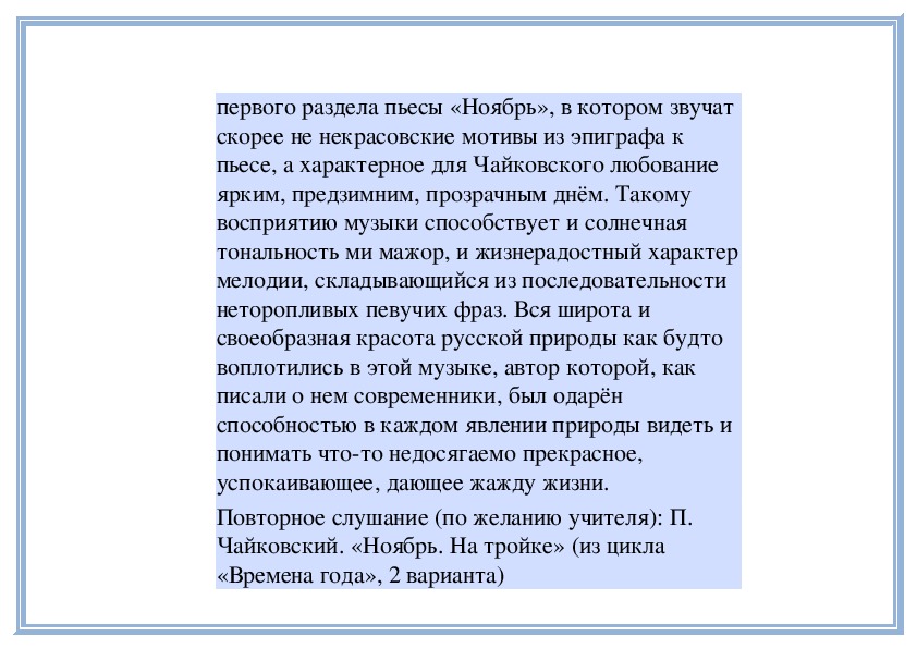 Слушание: П. Чайковский. «Октябрь. Осенняя