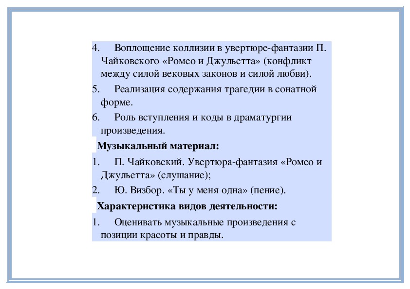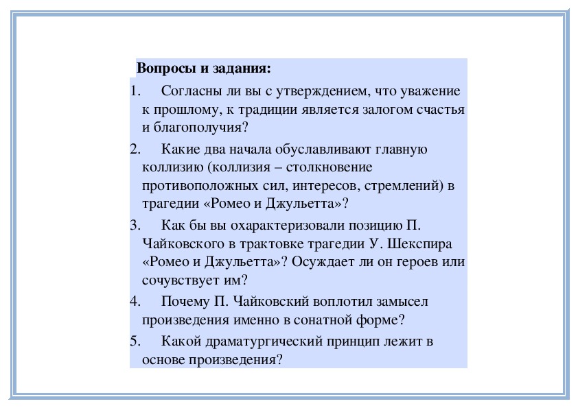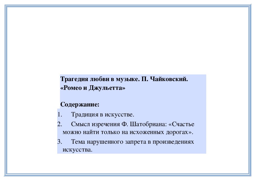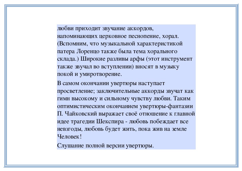 известных вам оперных произведений.Трагедия любви в музыке. П. Чайковский.