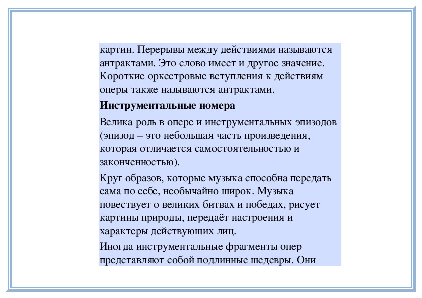 Иногда инструментальные фрагменты опер