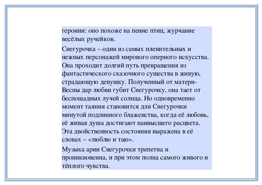 передаёт? Объясните на примере арии Снегурочки