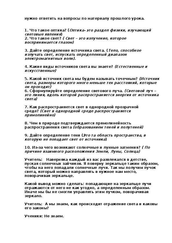 1. Что такое оптика? (Оптика- это раздел физики, изучающий