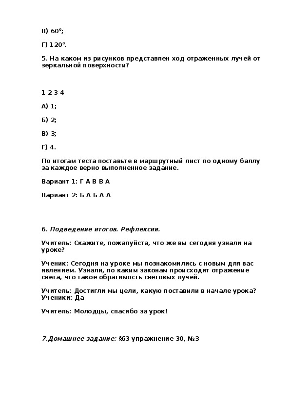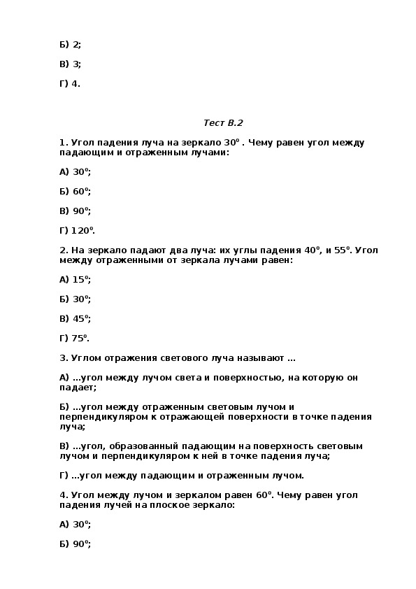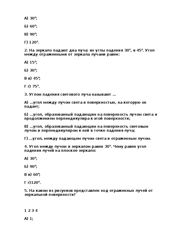 4. Угол между лучом и зеркалом равен 300. Чему равен угол