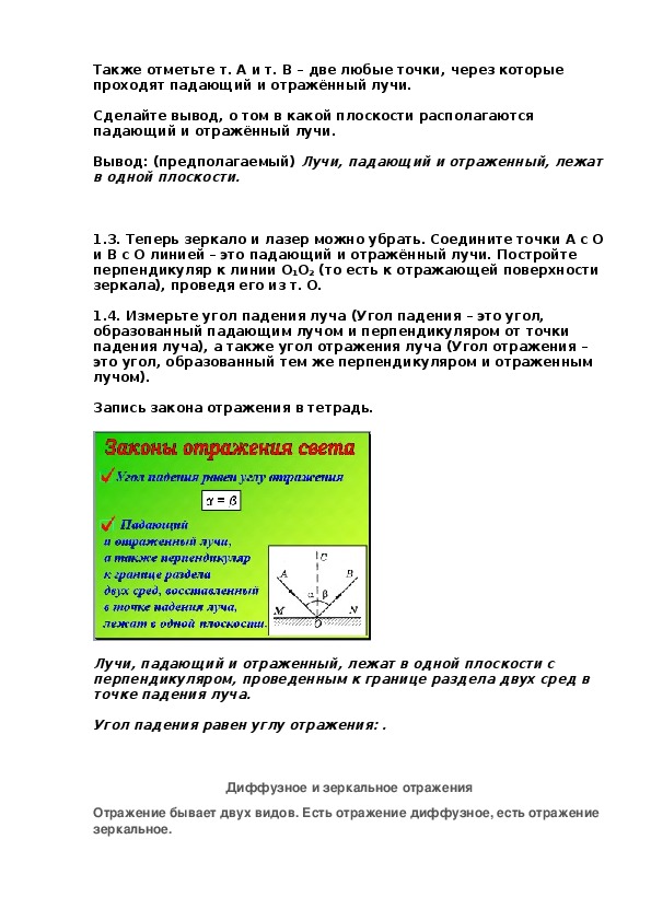 Вывод: (предполагаемый) Лучи, падающий и отраженный, лежат