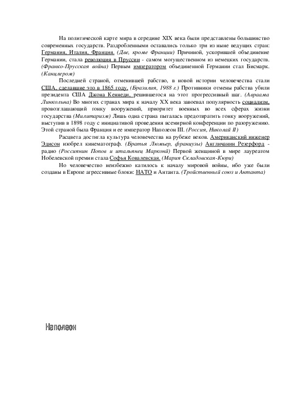 История XIX века сложный и интересный период в истории развития человечества. Важно добиться целостного осмысления изученного курса.