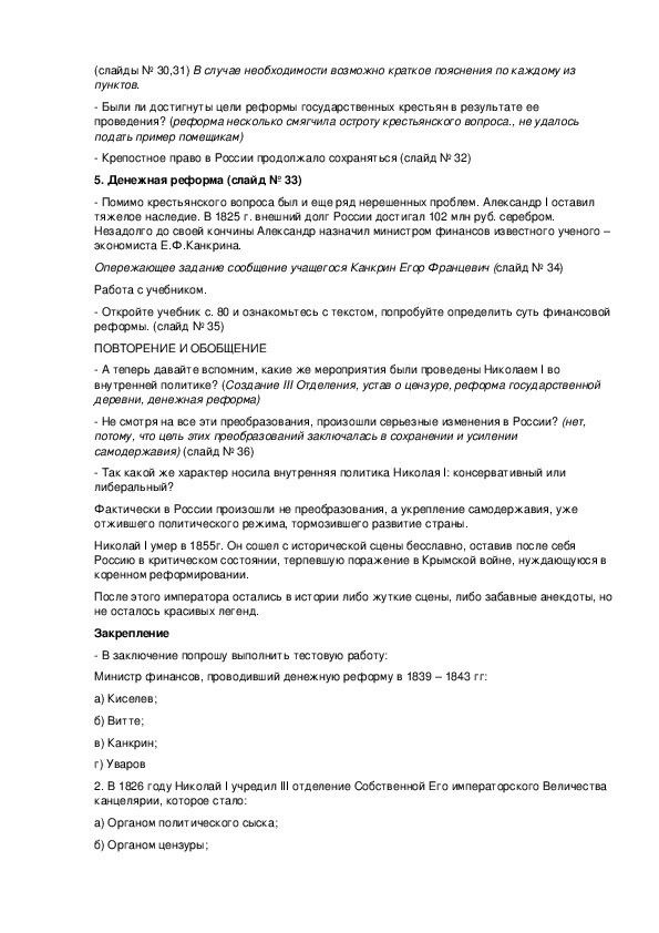 А теперь давайте вспомним, какие же мероприятия были проведены Николаем I во