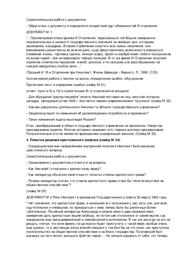 "Внутренняя политика Николая I". 8й класс