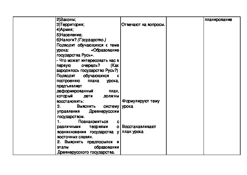 плана, постановке учебной задачи, планированию