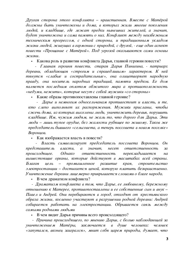IV. Аналитическая беседа по повести «Прощание с Матёрой».