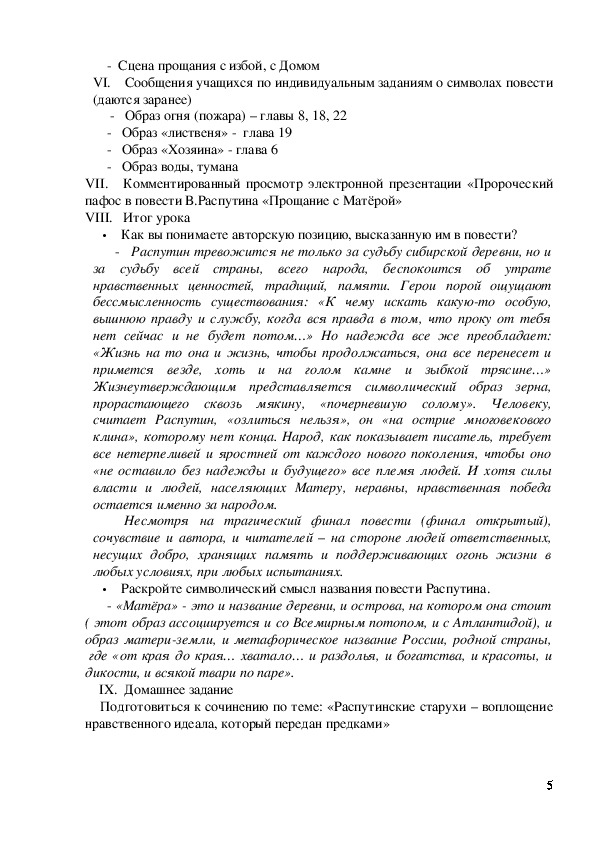 Урок по повести В.Распутина "Прощание с Матёрой"Актуальные и вечные проблемы в повести В.Г.Распутина