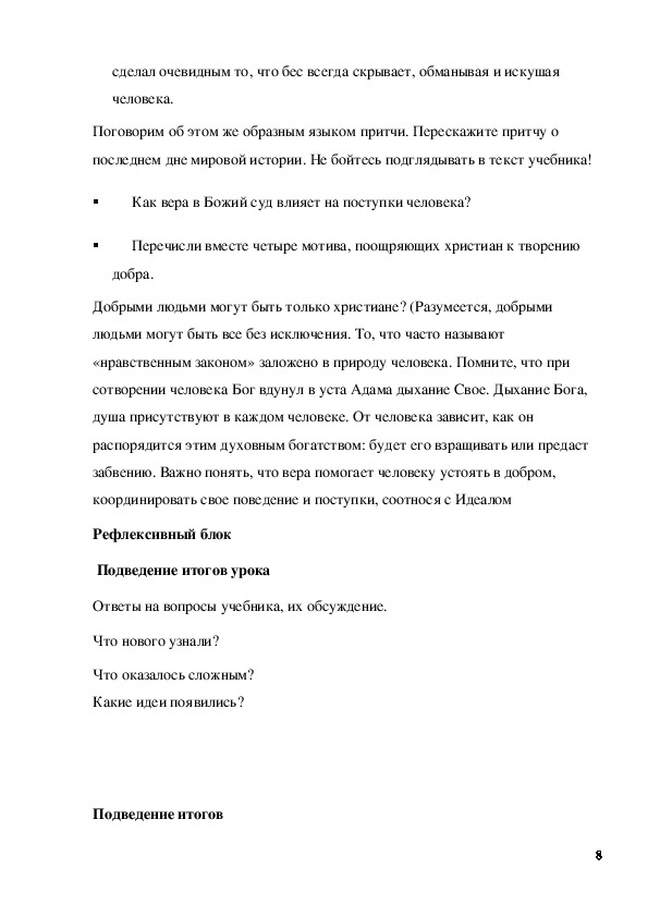 Знакомство с христианским мотивом доброделания в связи с представлениями о бессмертии души человека