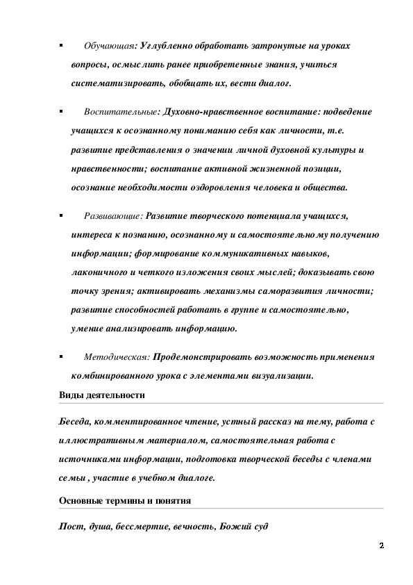 Воспитательные: Духовно-нравственное воспитание: подведение учащихся к осознанному пониманию себя как личности, т.е. развитие представления о значении личной духовной культуры и нравственности; воспитание активной жизненной позиции, осознание необходимости оздоровления человека и общества.