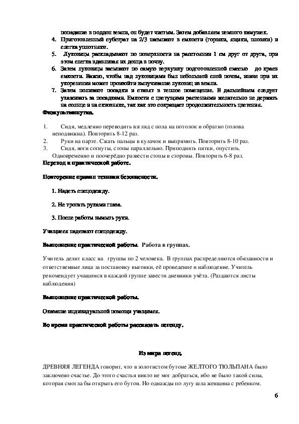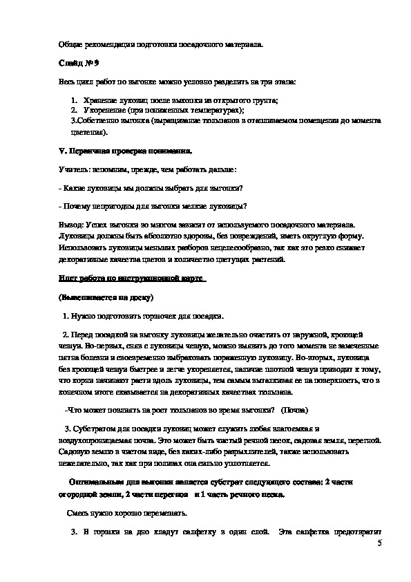 Цель урока: познакомить с приемом выгонки луковиц тюльпанов в зимнее время.
