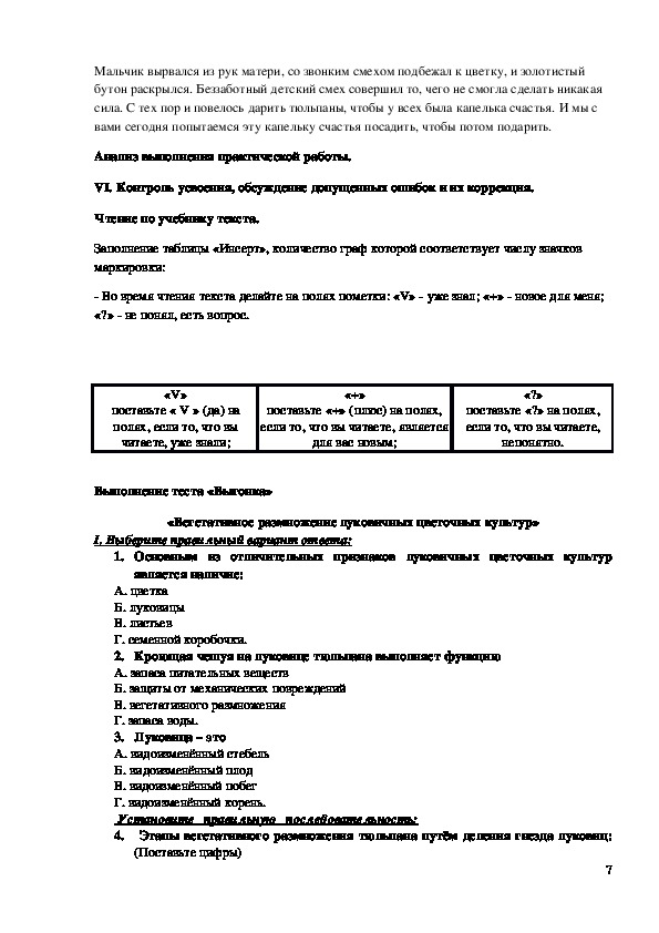 Во время чтения текста делайте на полях пометки: «V» уже знал; «+» новое для меня;