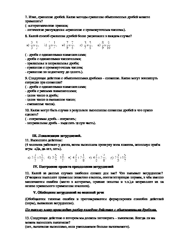 выделять целую часть).7. Итак, сравнение дробей. Какие методы сравнения обыкновенных дробей можете