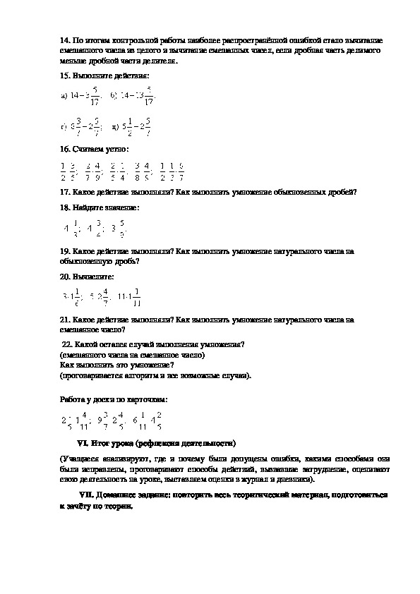17. Какое действие выполняли? Как выполнить умножение обыкновенных дробей?