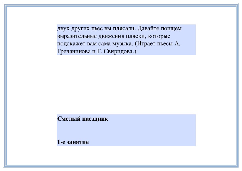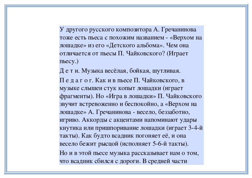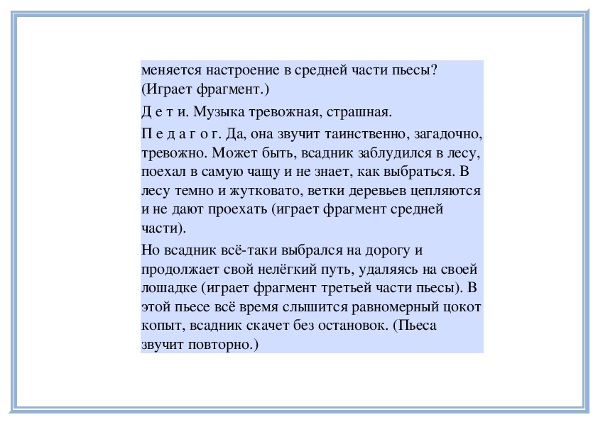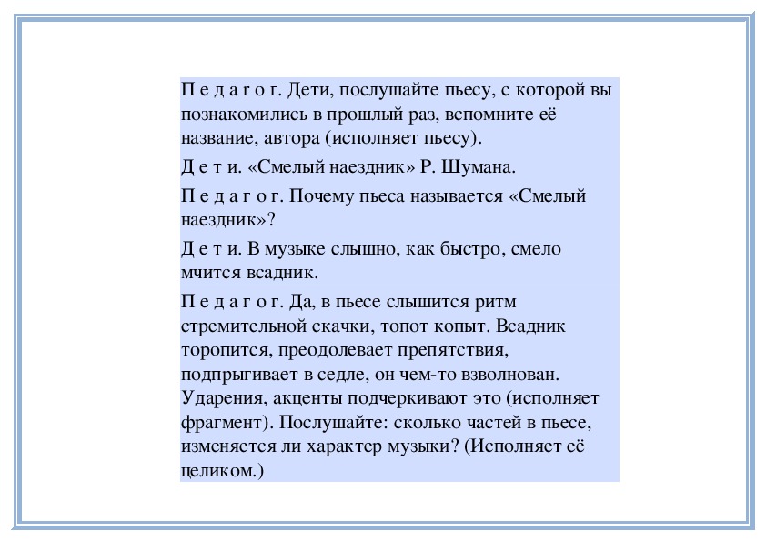 П е д а г о г. А пьесы «Всадник»? (Исполняет