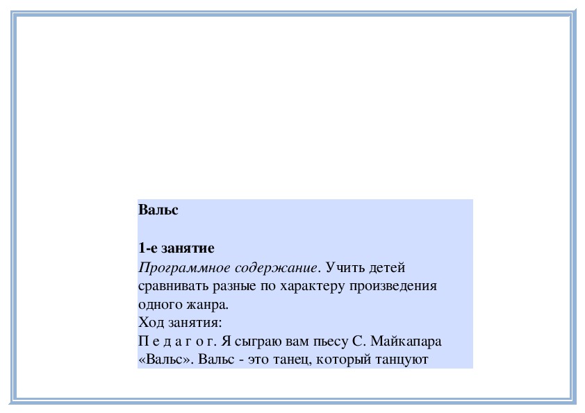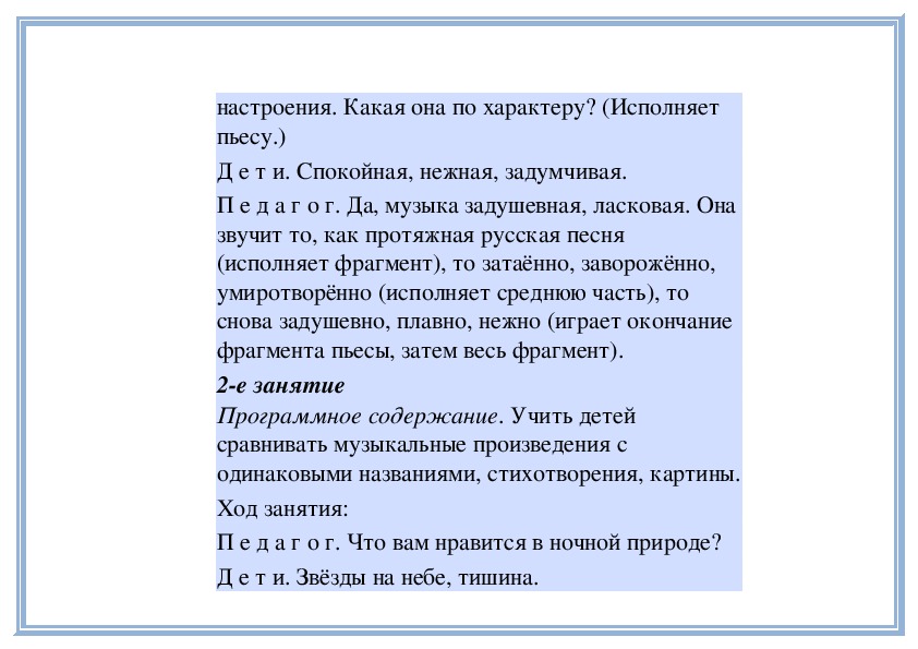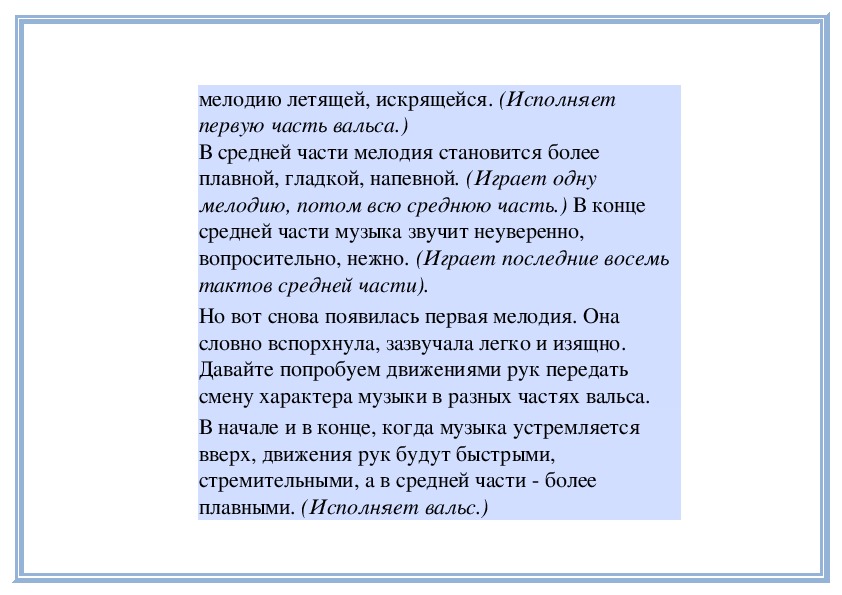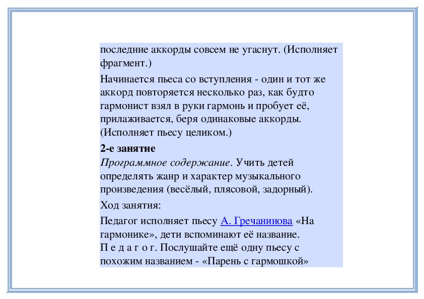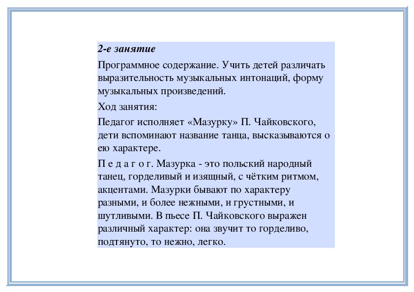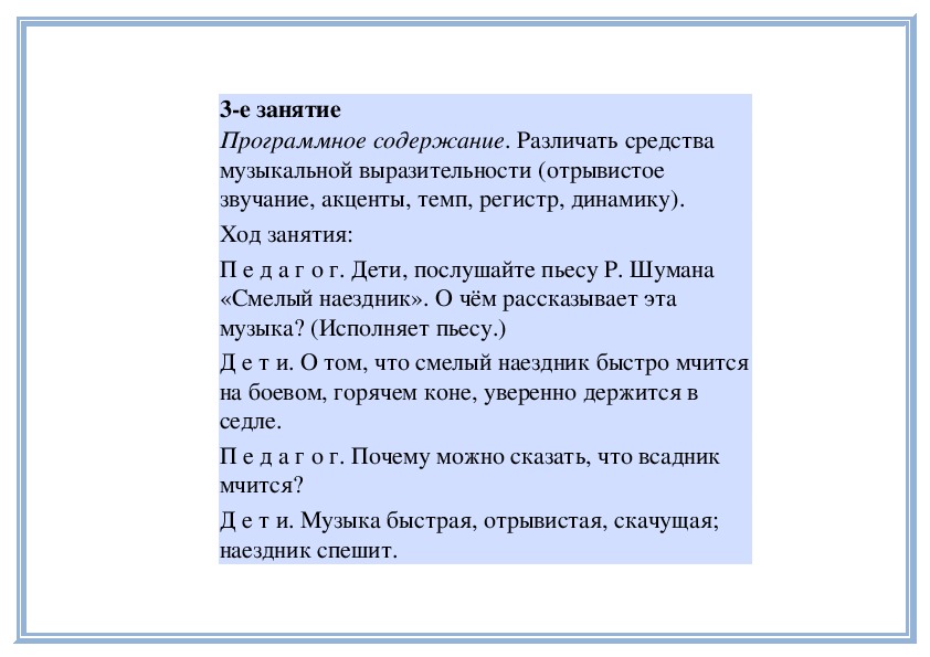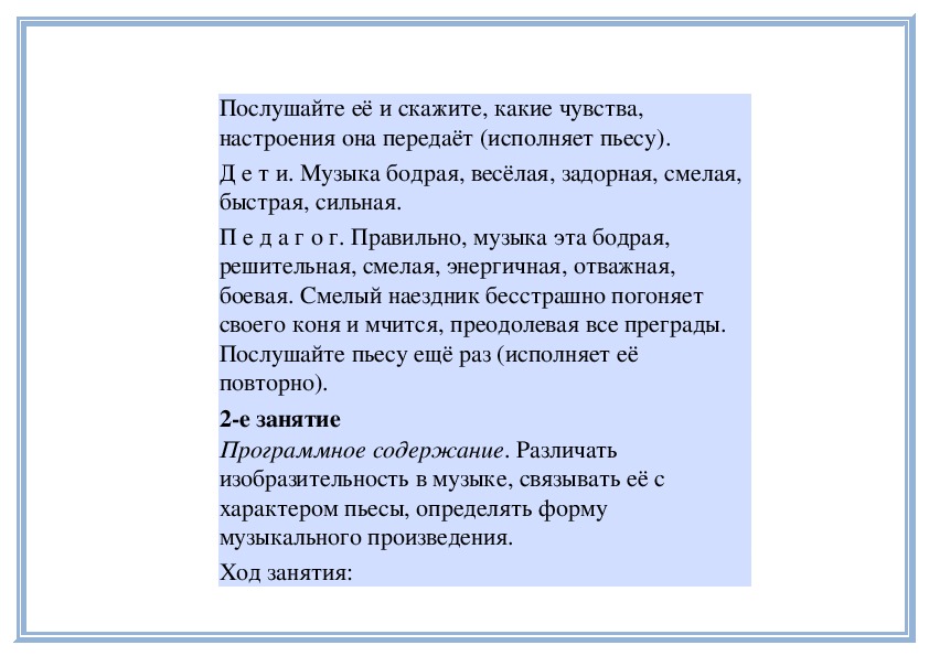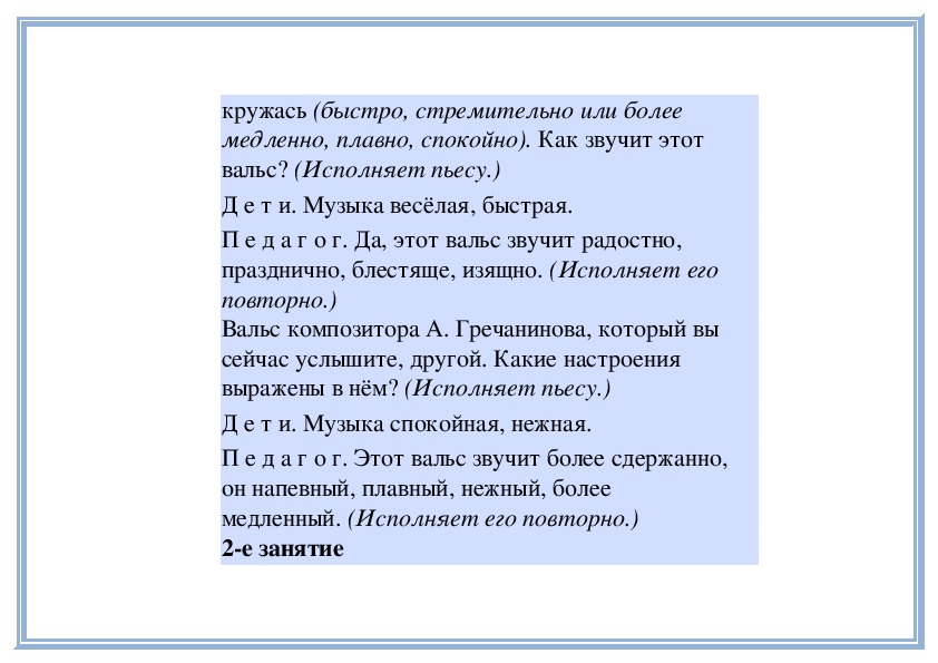музыке Д. Кабалевского. (Исполняет пьесу.)2е занятие