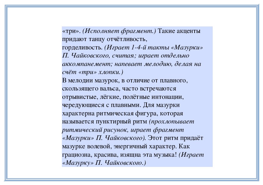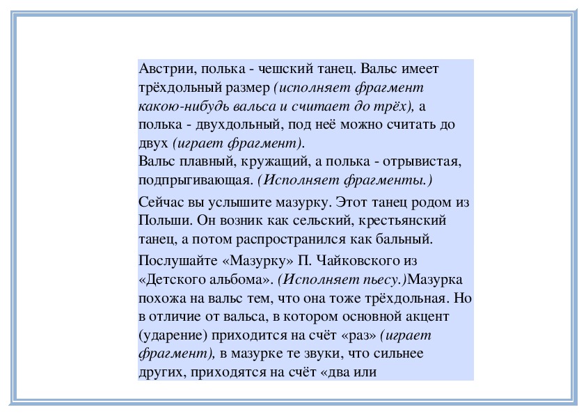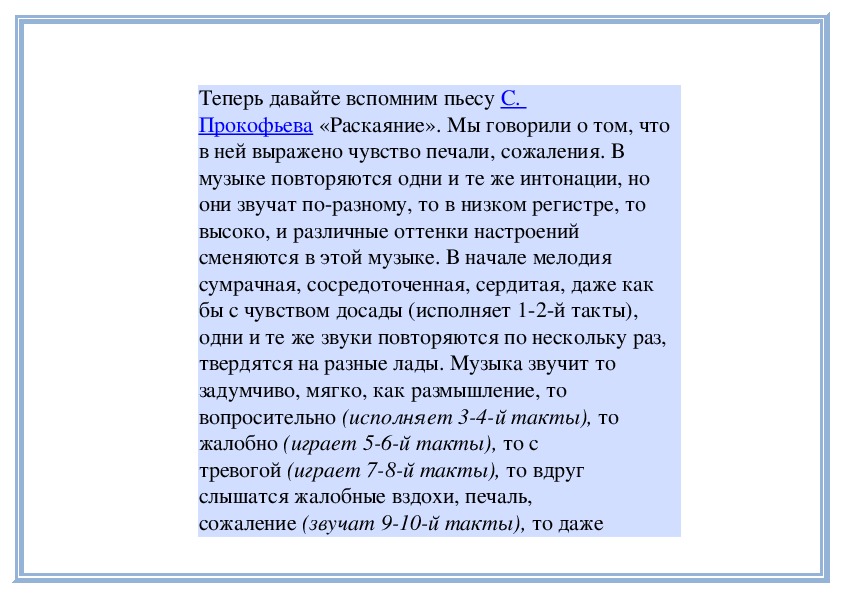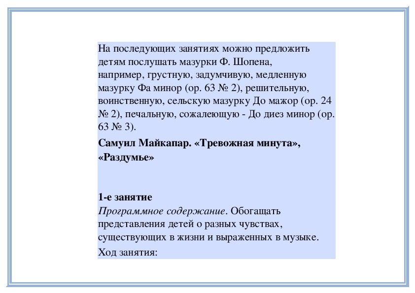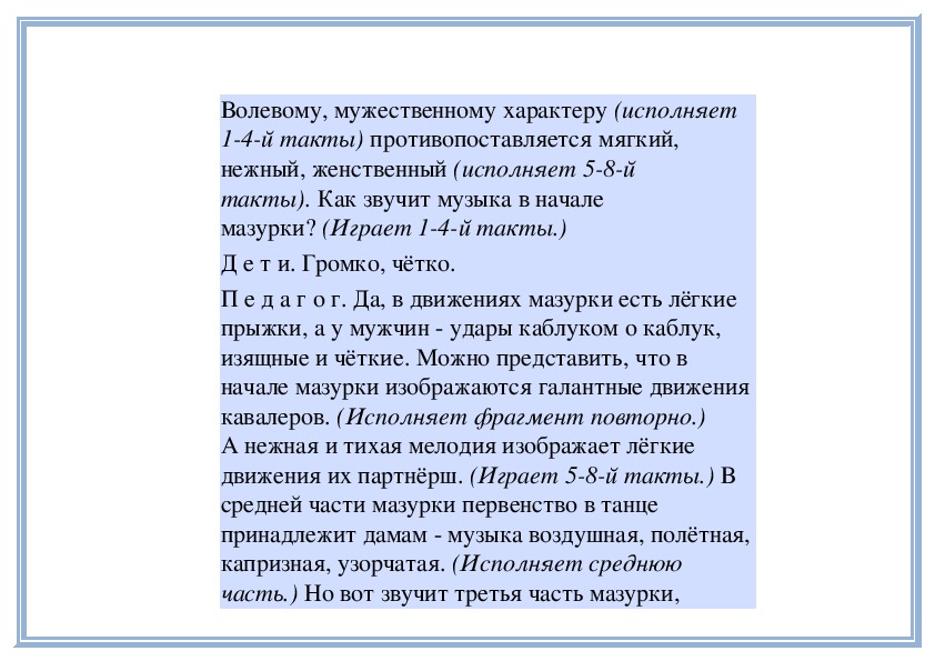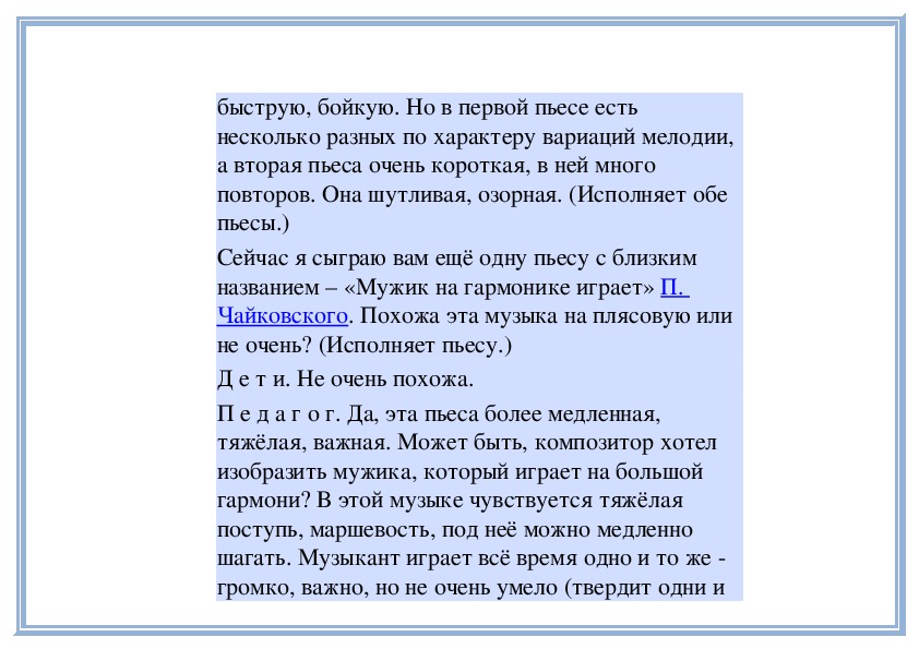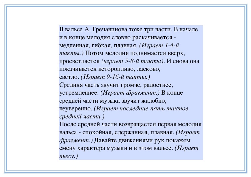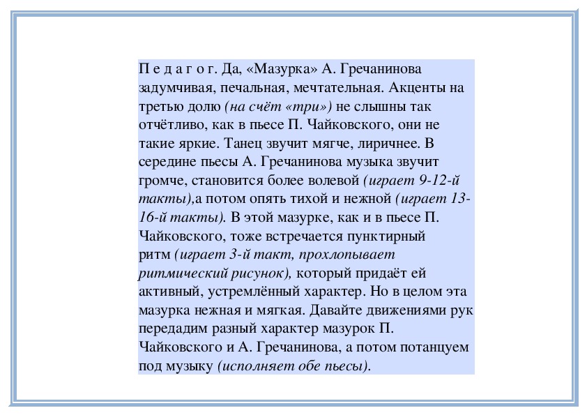 музыке Д. Кабалевского. (Исполняет пьесу.)2е занятие