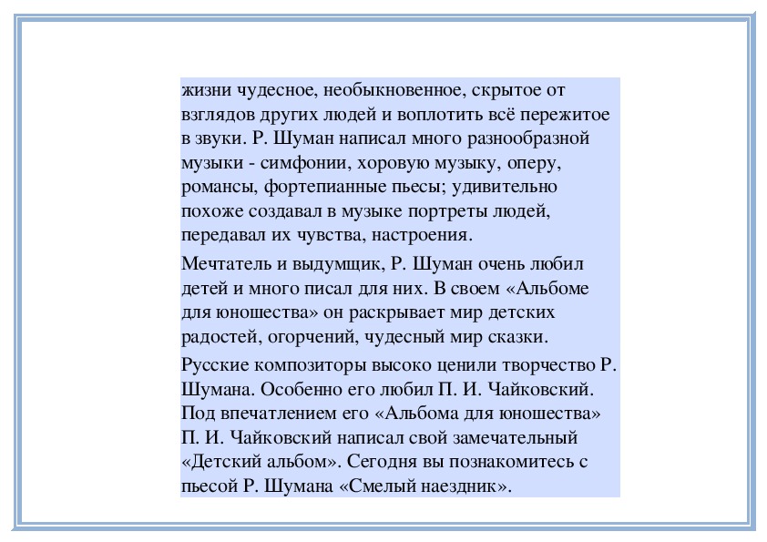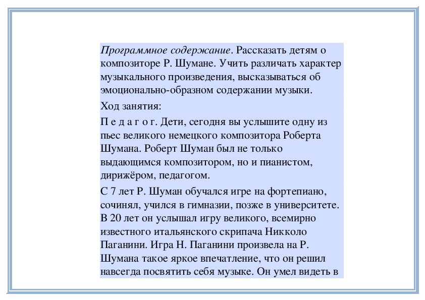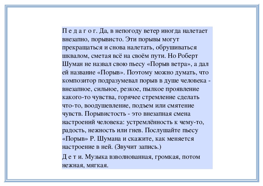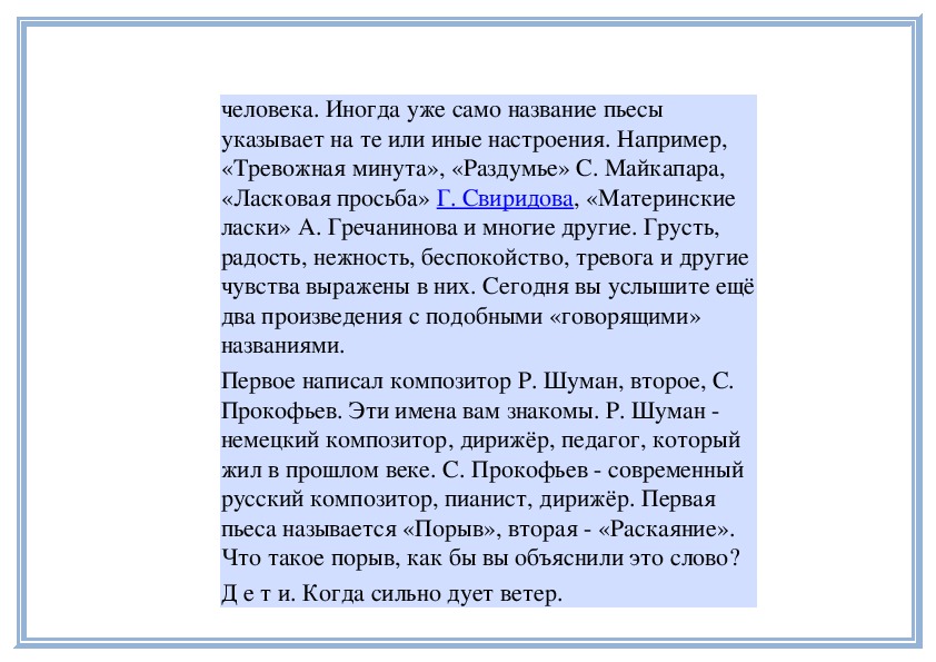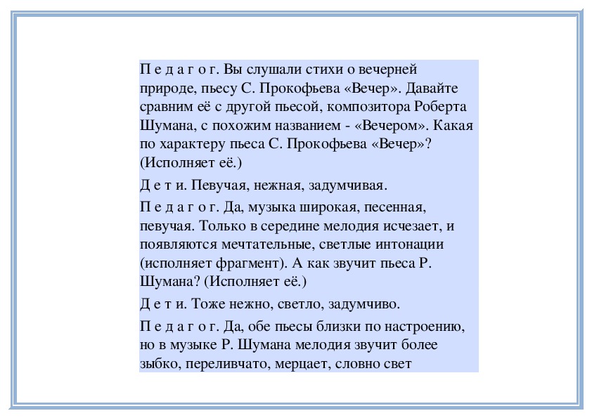 П е д а г о г. Вы слушали две пьесы Р. Шумана