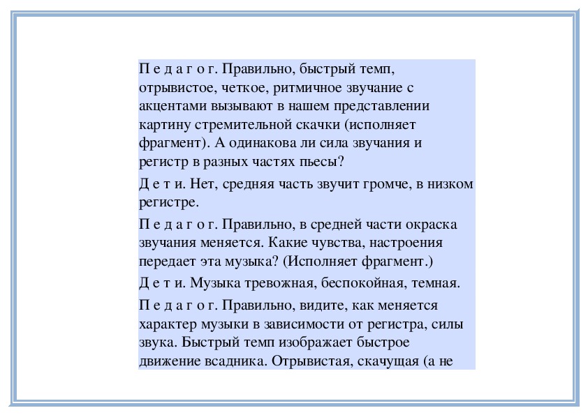 П е д а г о г. Правильно. Наверное, всадник скачет