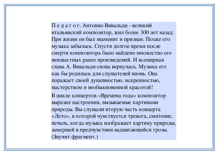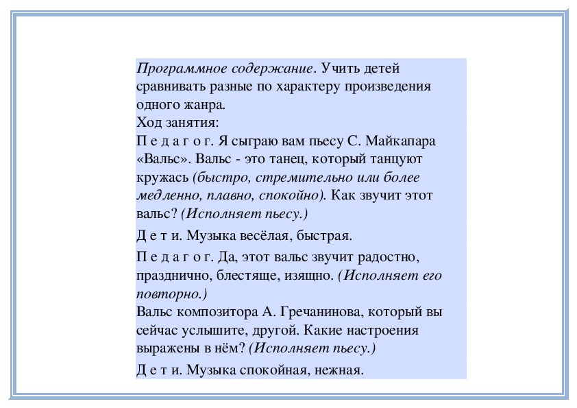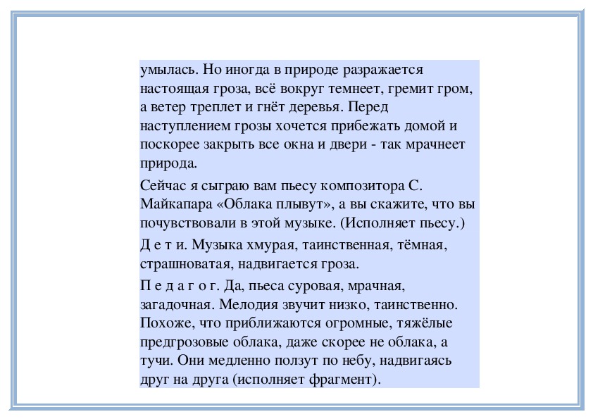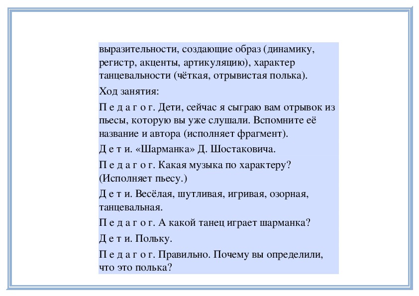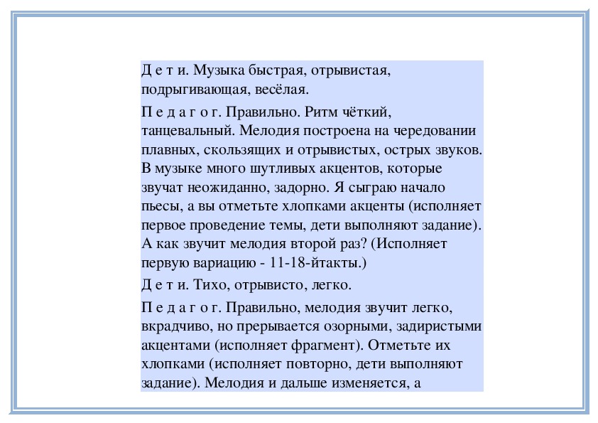 П е д а г о г. Правильно. Когда мелодия звучит