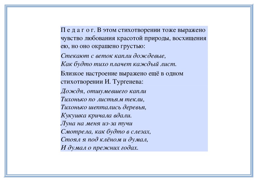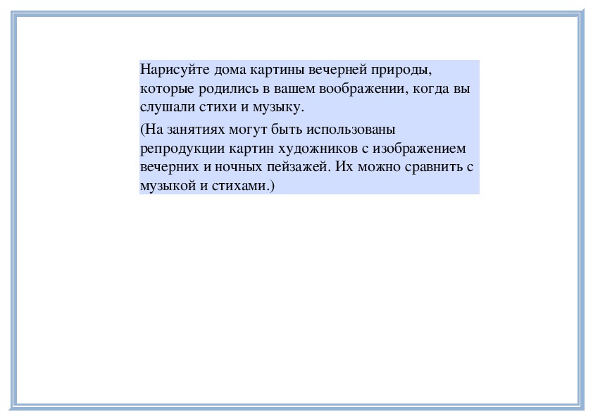 П е д а г о г. Вы слушали стихи о вечерней
