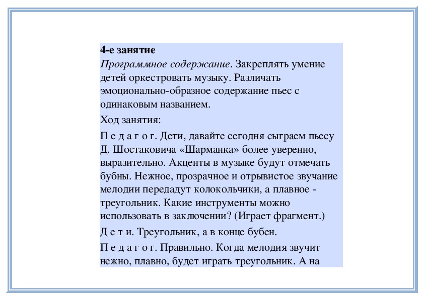 инструменты, исполняет пьесу вместе с ними).4е занятие
