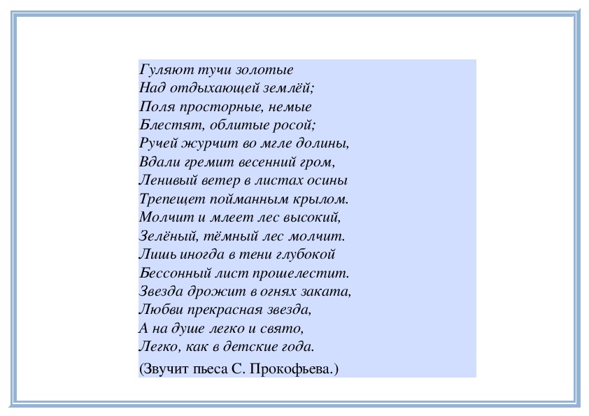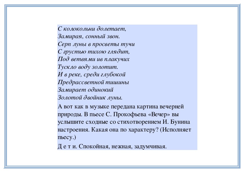 природе, пьесу С. Прокофьева «Вечер». Давайте