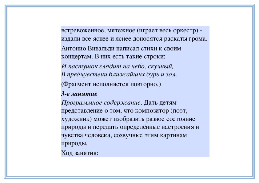 Программное содержание. Развивать у детей эстетическое восприятие: чувство красоты природы, музыки, поэтического слова.