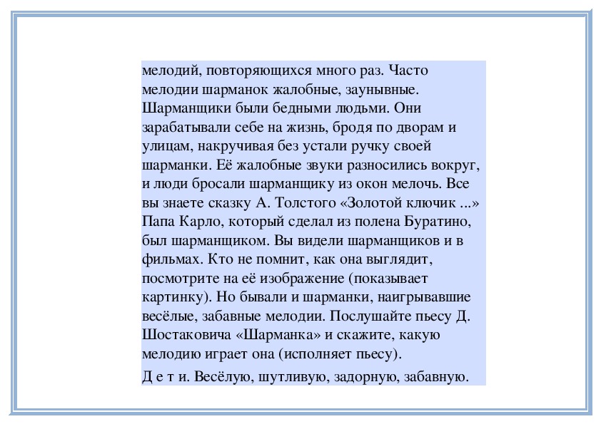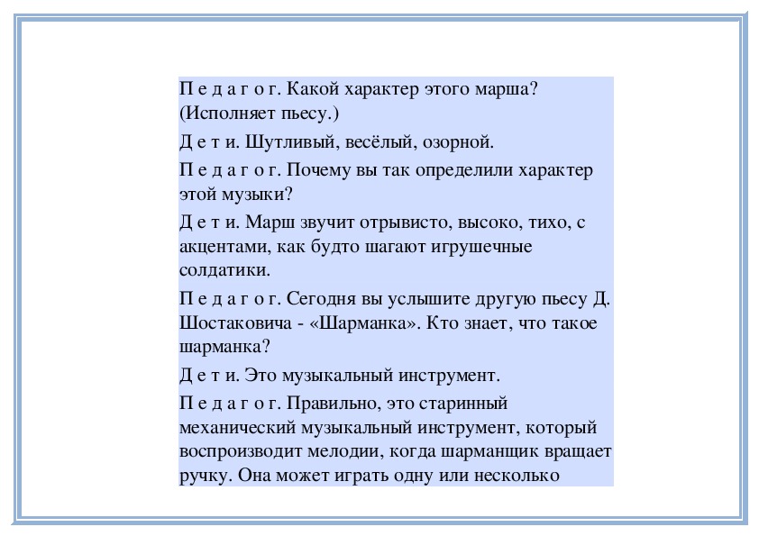 П е д а г о г. Правильно, эта шарманка играет