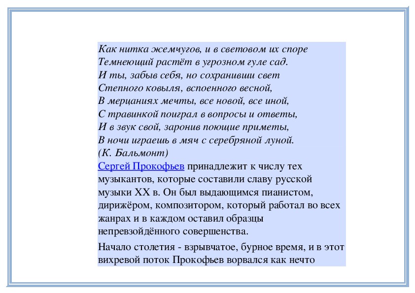 творчеству молодого композитора. Близок оказалсяПрокофьеву и мистицизм, занимавший столь большое