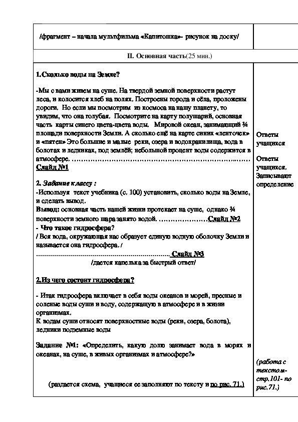 планете Земля; раскрыть значимость гидросферы; ориентировать учащихся на