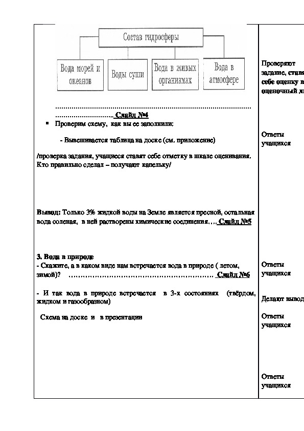 (Цель: иметь представление о гидросфере, выяснить ее состав,