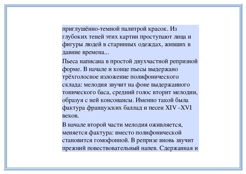 прежний повествовательный напев. Сдержанная иблагородная простота, аромат старины сделали