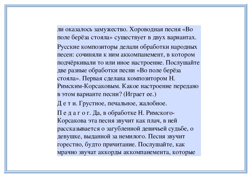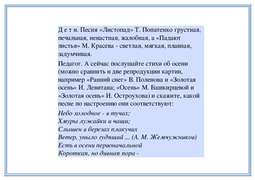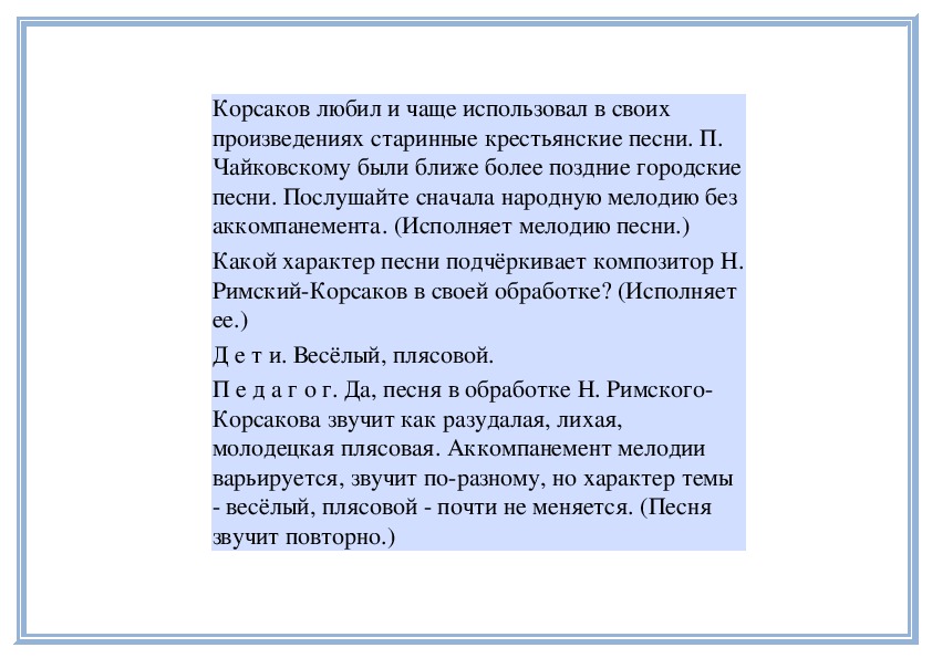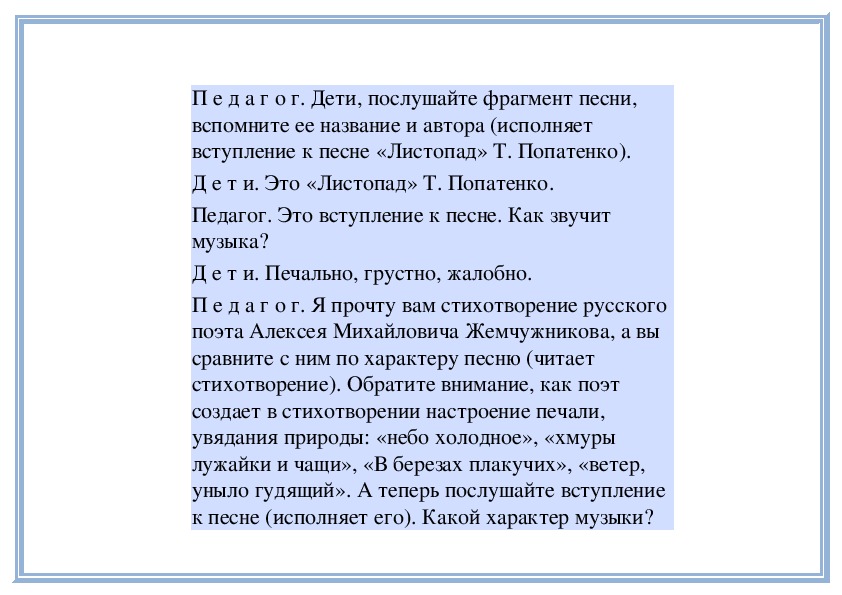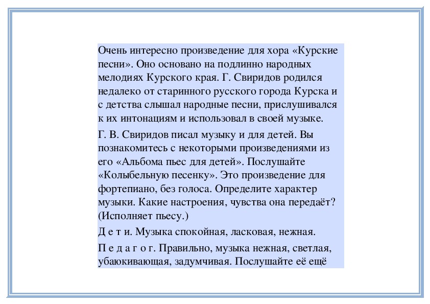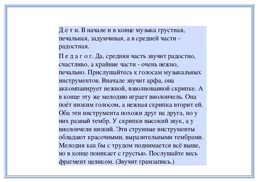 П е д а г о г. Да, в этой музыке слышатся не только