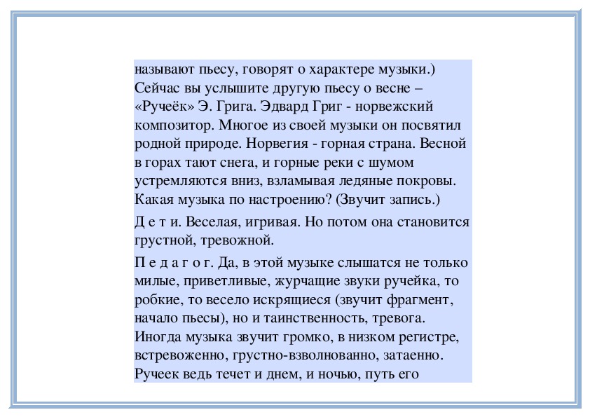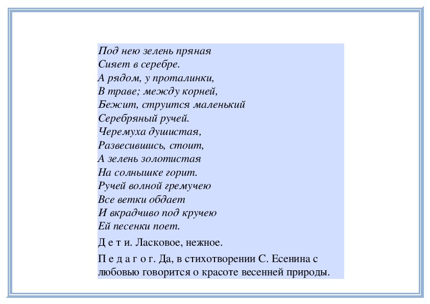 П е д а г о г. Да, ручеек лучисто, весело блеснул