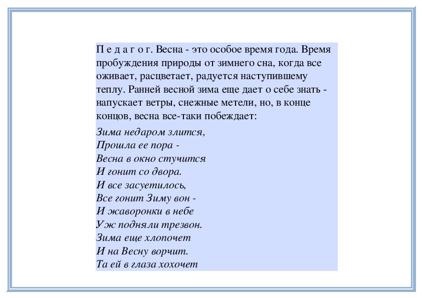 П е д а г о г. Пригрело весеннее солнышко, и
