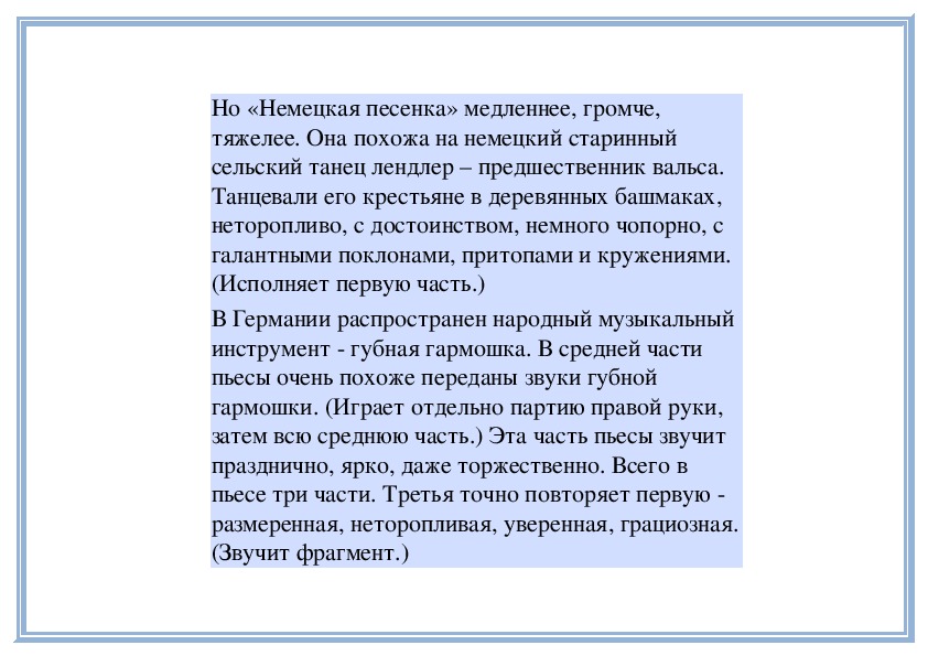 песенки» и «Немецкой песенки», передадим