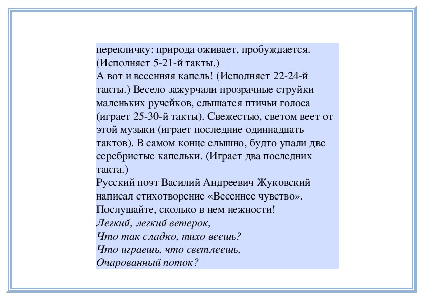 какие звуки весенней природы слышатся в музыке.