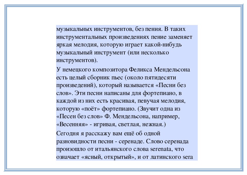 «Песен без слов» Ф. Мендельсона, например,