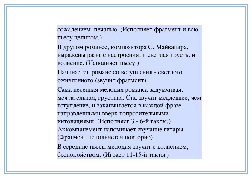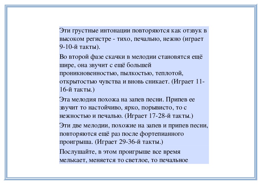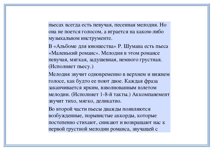 мечтательную, печальную. (Играет пьесу