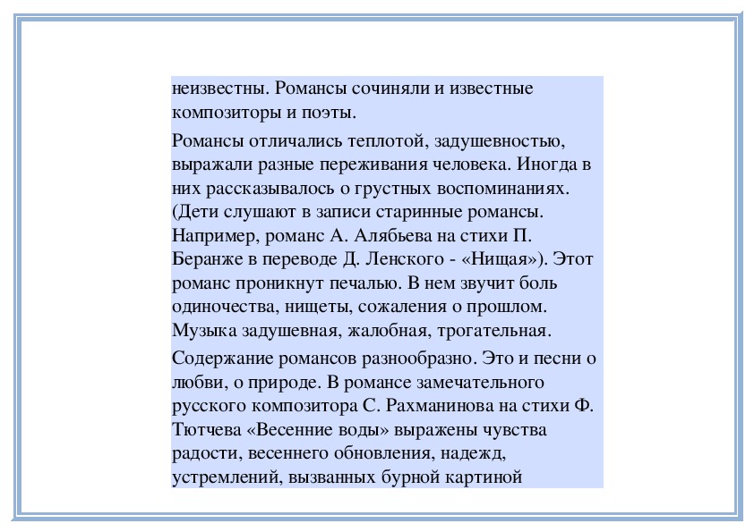 романсами. Знаете, что песня и романс (вокальные