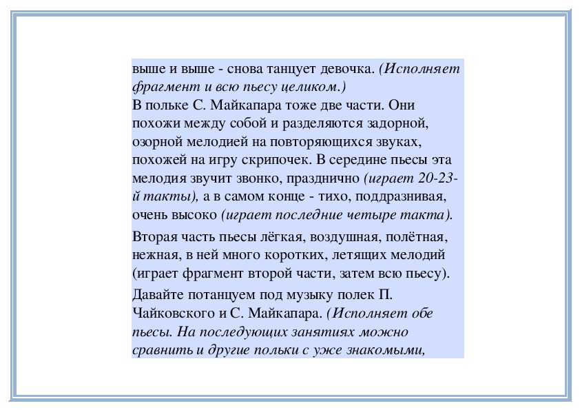 танцевальных движениях. (Играет пьесы.)