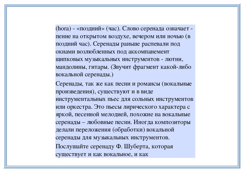 разновидности песни серенаде. Слово серенада